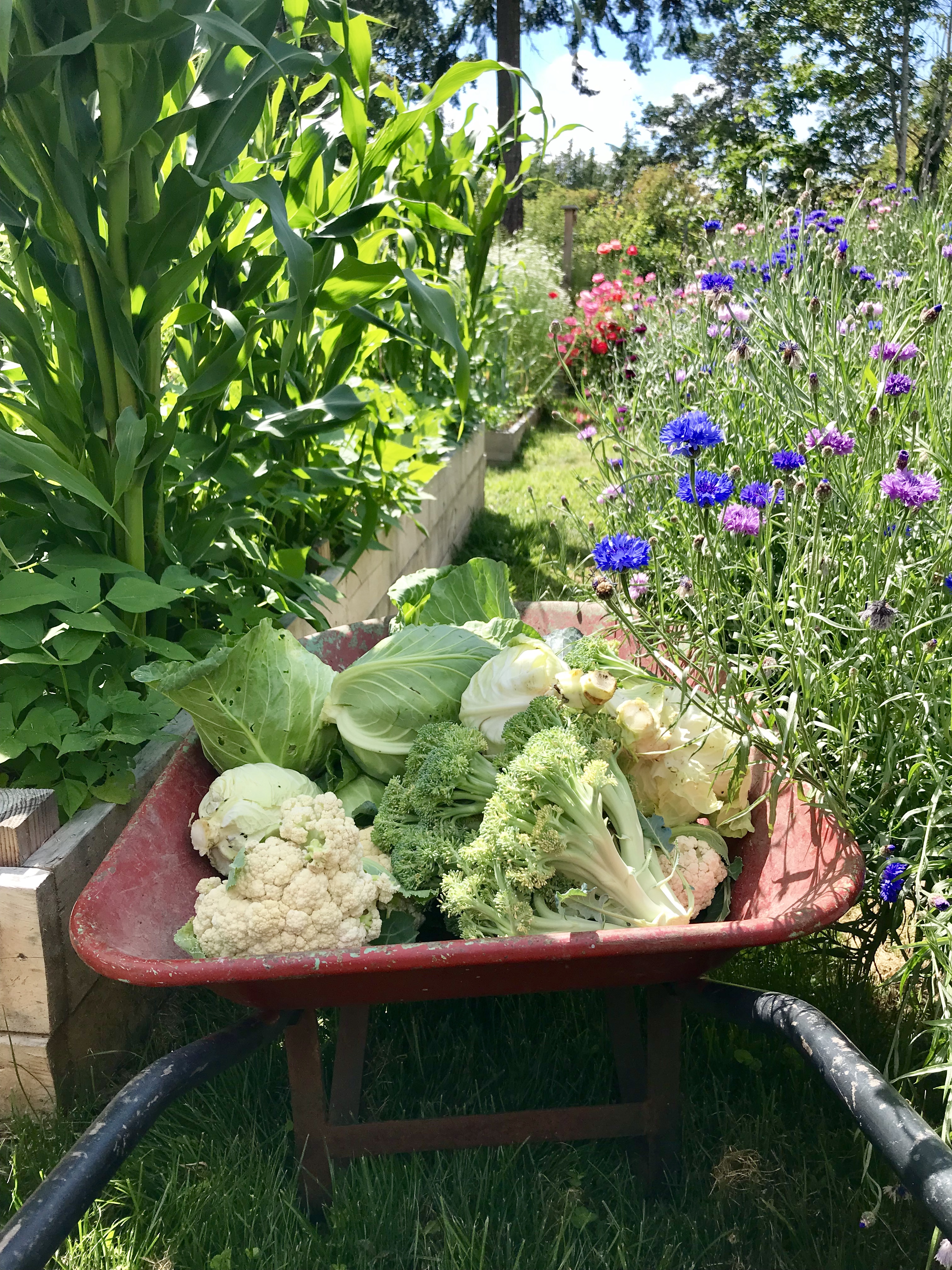I set up my garden beds on the Principle of Bio-intensive gardening (which is related to the “Chinese Method” of raised or otherwise isolated beds.) In both cases, you don’t till the beds, other than when establishing them. Unfortunately some people are engaging in no-till practices with that preliminary understanding – I guess it caters to laziness? But both of these styles are heavily dependant on regular composting and interplanting to maximize soil surface and root preferences. For example, long, tap-root plants can be planted tightly amongst shallow, ball shaped roots as they’ll both be feeding from different depths. The reason for not tilling this garden is because it is planted with annuals (you wouldn’t till a perennial garden anyways), who die back and leave their roots to decompose throughout the soil column. This is essential, and is part of the reason it benefits beneficial insects. The soil in beds prepared and maintained in this way is alive! Of course, all soil has living things, but the biomass and biodiversity in these beds is extreme. Remember the more living things, the more balance.